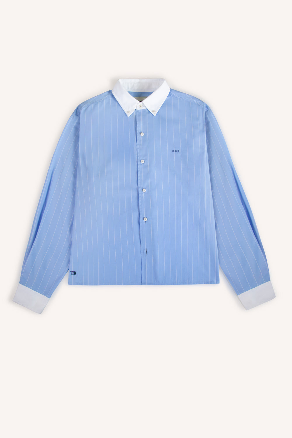 Col et poignets blancs.
